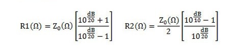 R1 (shunt) = Z₀ × (K + 1) / (K – 1)