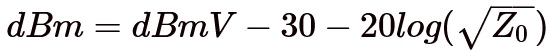 dBm = dBmV – 30 – 10 × log10(Z₀)
