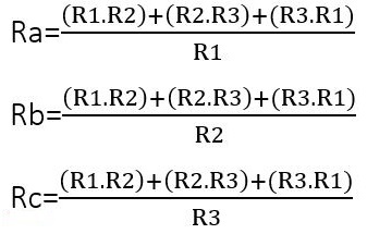 Chaque résistance du triangle est obtenue en additionnant les deux résistances adjacentes de l’étoile et en ajoutant le produit de ces deux résistances divisé par la troisième résistance. Cette relation assure que la même impédance apparente est conservée entre les trois bornes du réseau.