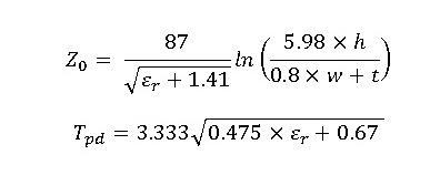 La correction Δraw ajuste la largeur effective de la ligne pour compenser l’épaisseur du trace. La largeur effective Weff est ensuite utilisée pour calculer la permittivité effective εeff via la formule de Hammerstad. L’impédance Z₀ est dérivée à partir de εeff et Weff. Enfin, le retard de propagation TD exprime la vitesse de propagation du signal à travers la ligne microstrip.