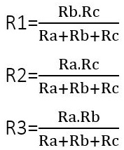 R3 = (Ra × Rb) / (Ra + Rb + Rc)